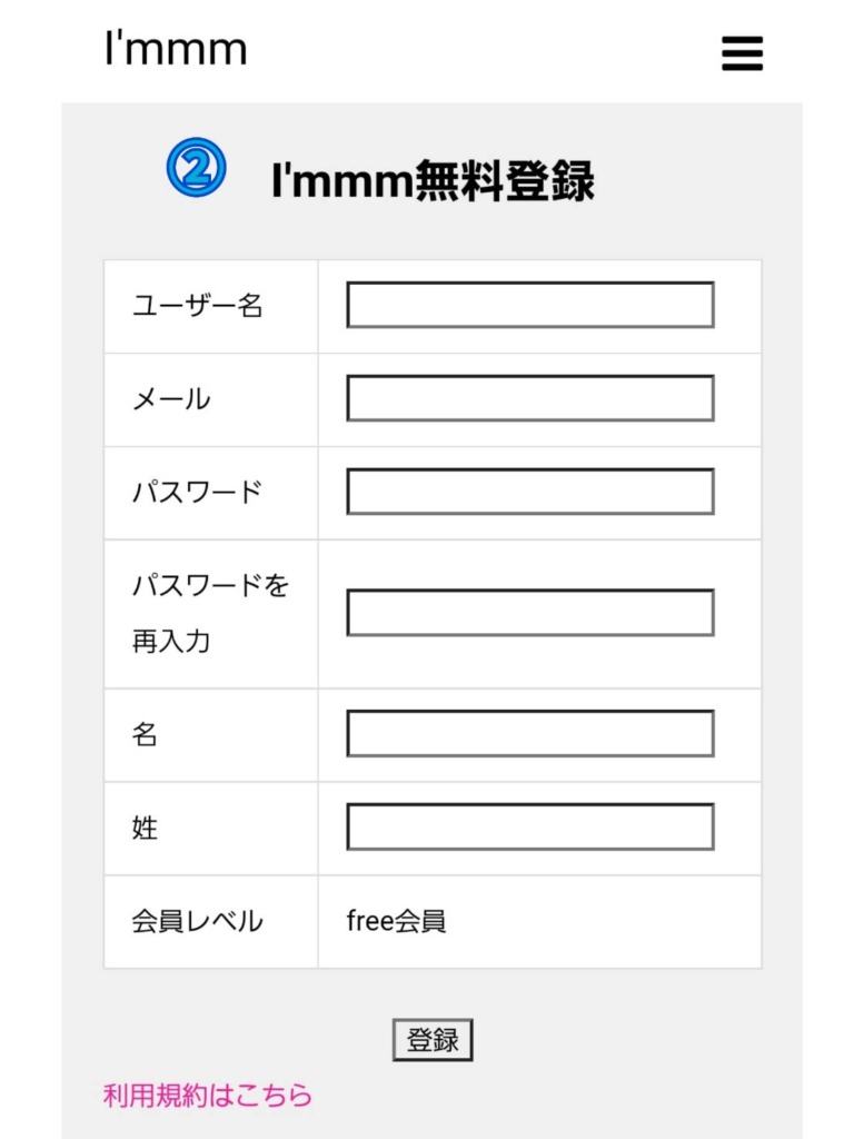 「I’mmm無料登録」に必要事項を記入し登録ボタンを押します。